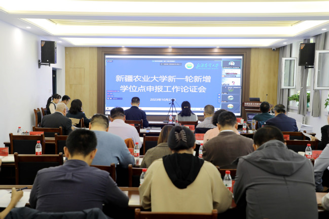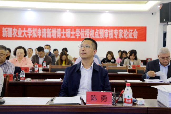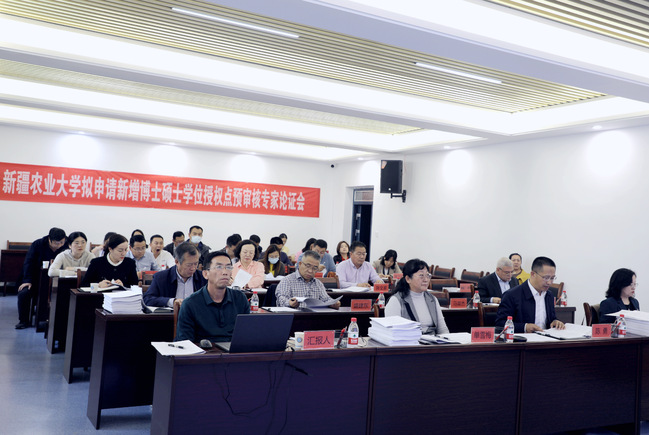 10月27日下午,学校在研究生院会议室召开了博硕士学位授权点拟申报专家论证会。邀请来自南京农业大学、西北农林科技大学、甘肃农业大学、河南农业大学、新疆大学等高校的七名专家对申报材料进行论证。论证会由新疆农业大学党委常委、副校长陈勇主持,自治区教育厅学位管理和研究生教育处副处长林晨教授出席,研究生院、拟申报新增学位授权点负责人及相关学院院领导参加会议。