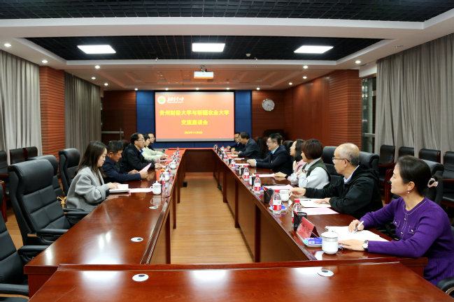 贵州财经大学教务处、科研处、研究生院、人事处负责人,新疆农业大学党办校办、教师工作部(人事处)、教务处、科学技术处、研究生院、经济管理学院、公共管理学院(法学院)负责人参加座谈。