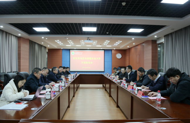 12月18日,阿克苏地委副书记郭涛一行来校座谈交流,新疆农业大学校长蒋平安主持座谈会,对郭涛一行到来表示欢迎,并介绍了学校基本情况和学校在改革发展中取得的成效。