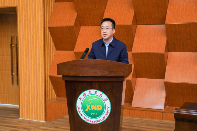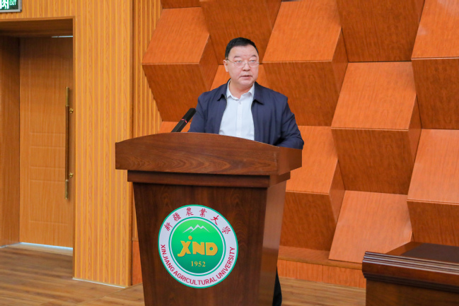 叶尔波力·沙比尤拉宣读《关于同意新疆农业大学科学技术协会换届的批复》并代表自治区科协致辞。他充分肯定了我校科协自成立以来各项工作取得的成绩,希望学校科协在新一届委员会班子的带领下,更好地履行高校科协工作职责,在强化政治引领中体现更大担当,在服务科技工作者中展现更大作为,依托自身农业优势,加快科技成果转化,释放创新驱动效能,助力推动自治区科技事业高质量发展。