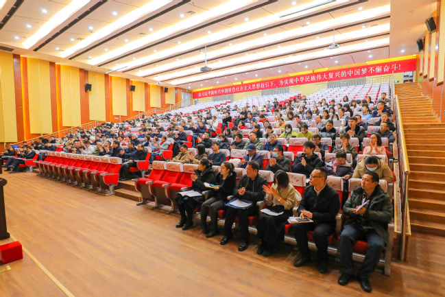 自治区科协反邪教协会秘书长叶健,全体在家校领导,学校科协、社科联300余名会员代表参加会议。