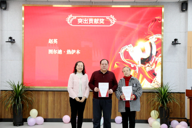 颁奖期间,穿插着“你划我猜”“歌曲竞猜”和“集体生日”等互动环节,教师们踊跃参与、欢声笑语,现场气氛热烈。热亚提老师的吉他弹唱扣人心弦、赢得热烈掌声。裴红娟老师的清唱歌曲婉转动听、打动人心、温暖全场。之后,全体教师齐唱生日歌,为近期过生日的教师过集体生日,送上祝福。