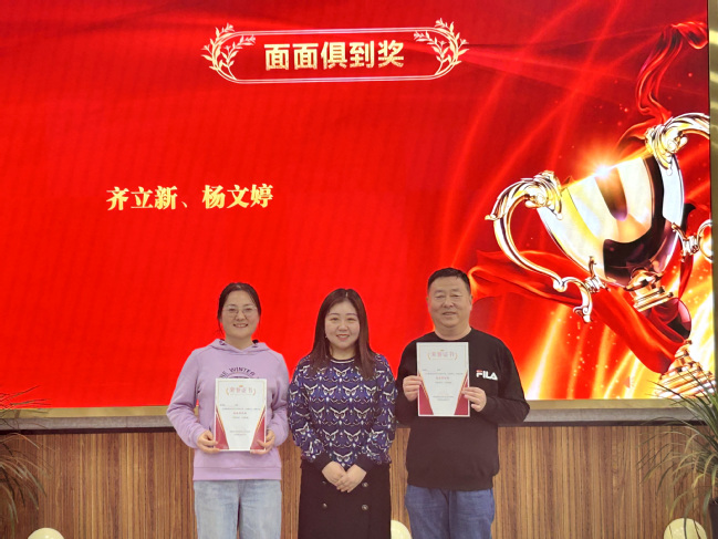 之后,进入年终盛典的颁奖环节,该环节共分为“踔厉奋发 务实担当”“追求卓越 勇毅前行”“春华秋实 再创佳绩”三个篇章,每一篇章均设置了新颖独特的奖项,令人充满好奇和期待。随着“披星戴月奖”“同向同行奖”“培育新苗奖”“鱼跃龙门奖”“添丁奋进奖”“坚守奉献奖”“教学之星”“科研之星”“中流砥柱奖”等奖项的一一揭晓,在教学、科研、师资队伍建设、人才培养、课程思政、攻读学位等各方面表现优秀的教师逐一亮相、受到表彰,呈现出学院教师一年来辛勤耕耘、奋发有为、担当奉献的生动群像。