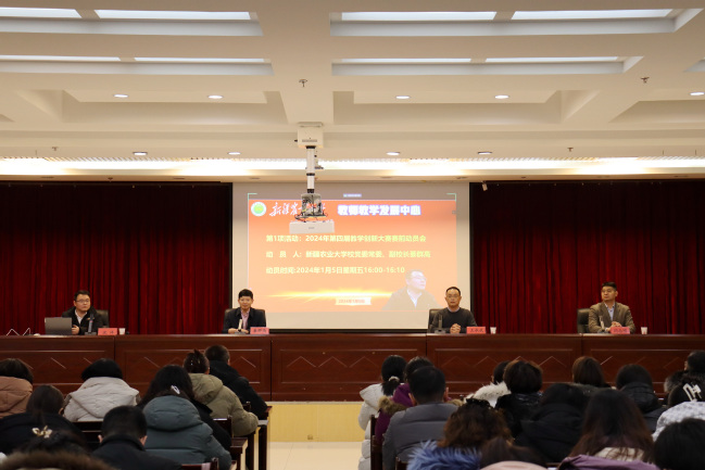 1月5日,由新疆农业大学教师教学发展中心主办的2024年第四届教学创新大赛赛前动员会暨赛前指导训练营活动在行政楼七楼多功能厅顺利举办,校党委常委、副校长綦群高出席活动并讲话。教务处副处长王承武教授主持会议。活动由新疆超星公司提供技术支持,以公益讲座的形式向全疆高校线上直播,参与直播、观看回放人数623人,新疆医科大学、我校近150名教职工线下参会。
