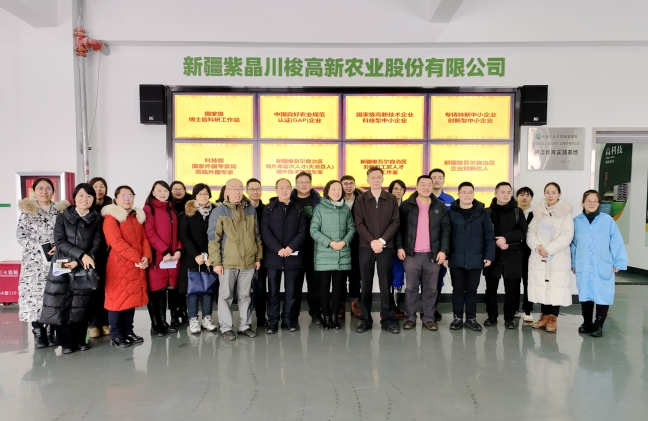 调研组与新疆紫晶川梭高新农业股份有限公司合影