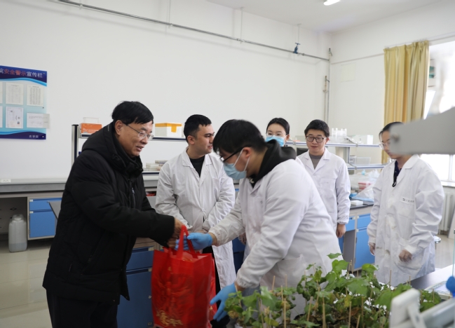 蒋平安走进农学院实验室,亲切慰问正在开展科研实验的研究生,询问大家的实验进展情况,叮嘱同学们注意实验安全,刻苦学习的同时要做到劳逸结合,预祝同学们的实验取得成功!