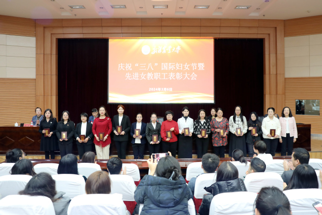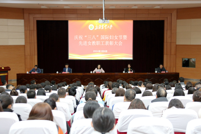 铭记初心使命,凝聚巾帼力量。3月6日下午,新疆农业大学庆祝“三八”国际劳动妇女节暨2024年先进女教职工表彰大会在八一会堂学术报告厅举行。校党委副书记张小楠,党委副书记、副校长董朝霞,党委常委、组织部部长赵文斌,党委常委、宣传部部长杨红,各单位党政领导,工会主席,先进女教职工,女教职工及女大学生代表,驻村干部家属代表等300余人参加活动。校党委常委、副校长綦群高主持会议。