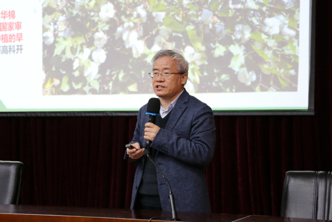 3月1日,中国工程院院士、华中农业大学张献龙教授应邀来校作学术报告,华中农业大学植物科技学院院长朱龙付教授陪同参加活动。新疆农业大学校长蒋平安教授主持报告会。