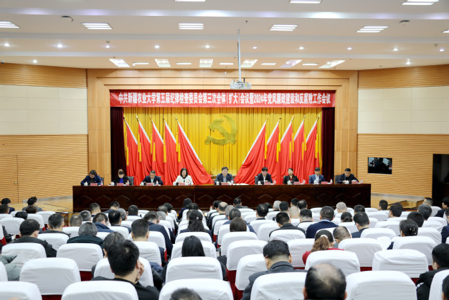 会议深入学习贯彻习近平新时代中国特色社会主义思想,全面贯彻党的二十大和二十届二中全会精神,坚决贯彻二十届中央纪委三次全会精神,特别是习近平总书记关于党的自我革命的重要思想,坚决贯彻习近平总书记在听取自治区和兵团工作汇报时的讲话精神,完整准确全面贯彻新时代党的治疆方略,认真落实自治区纪委十届四次全会精神和校党委工作部署,总结2023年纪检监察工作,部署2024年工作任务。