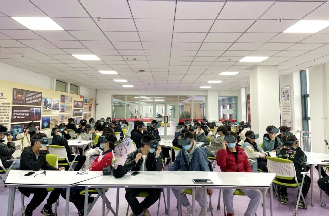 “今天的VR体验,形式非常新颖,对红军长征过草地爬雪山的艰辛感同身受,让我更加理解了长征精神”。土管2201班艾丽娜·托尔恒在体验了思政课融媒体中心的VR资源后谈起自己的感受。马克思主义学院精心打造思政课融媒体体验中心,利用“长征”“飞夺泸定桥”、线上纪念馆等丰富的VR教学资源开展沉浸式教学,思政课的吸引力不断增强。自主建设“铸牢中华民族共同体意识”VR实践教学资源,实现师生在虚拟空间与场景、物体、人物等产生联动,让学生在沉浸式、交互式中得到学习。自主建设的“传承红色基因 赓续红色血脉”VR实践教学资源,模拟还原不同时期的农大场景,通过交互式体验和实践,展现学校屯垦戍边办大学、稳疆兴疆育人才的创业史、发展史,丰富了校史校情教育的手段。