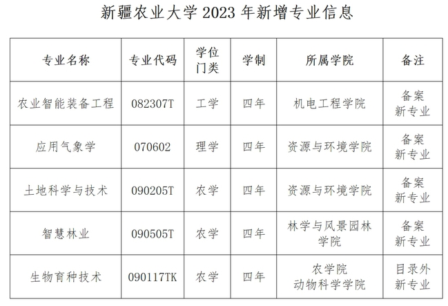 此外,新疆农业大学依据2023年起教育部首次试行的专业设置预申报制度(增设专业须提前1年进行预申报),积极建立健全专业设置定期研究、提前研究工作机制,增强专业设置的前瞻性、精准性,提交了4项下一年度拟增设专业的预申报材料。