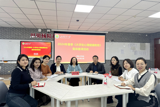 为进一步深化《大学生心理健康教育》课程教学改革,不断提升心理健康教育课程师资队伍的授课能力与专业水平,发挥课堂教学在大学生心理健康教育中的主渠道作用,推动心理育人实效。3月26日上午,学工部在智慧教室组织了《大学生心理健康教育》集体备课活动。校党委副书记张小楠、学工部副部长、学生处副处长开赛尔·艾斯卡尔、心理健康教育专职教师及授课教师等10余人参加本次集体备课活动。