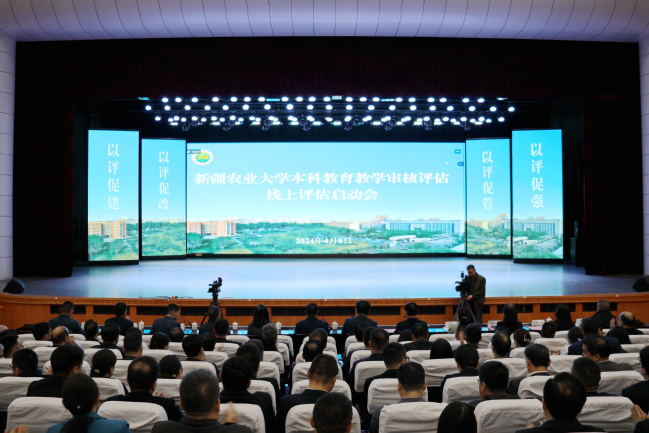 4月8日上午,新疆农业大学本科教育教学审核评估线上评估启动会在老满城校区八一会堂召开,会议以线上线下方式进行,评审专家组组长、华中农业大学校长李召虎等20位专家,专家组项目管理员、秘书线上出席会议。自治区人民政府总督学、教育厅党组成员孙长波一行,新疆农业大学党委书记谢树青、校长蒋平安及全体在家校领导班子成员,各职能部门主要负责人,教学单位领导班子成员在现场参加启动会。校党委常委、副校长綦群高主持会议。