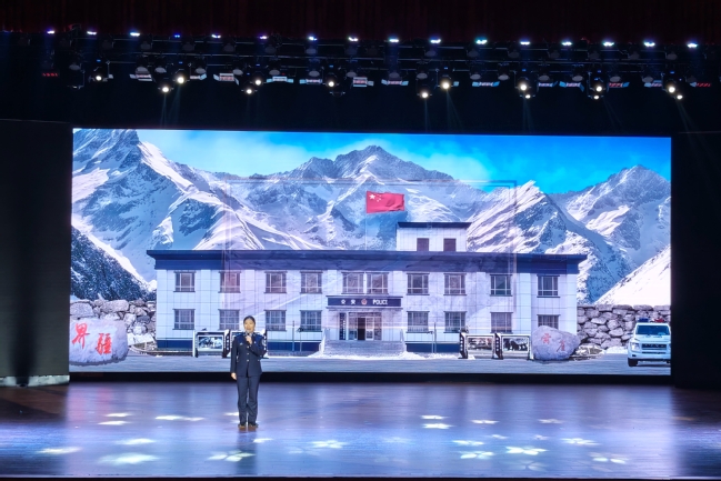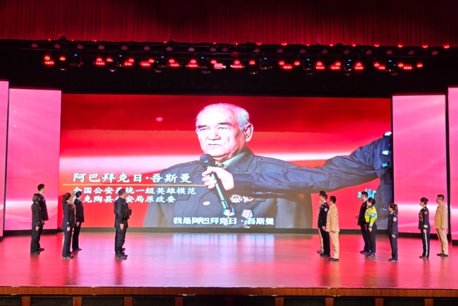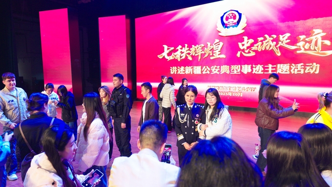 礼堂内座无虚席,师生们自发前来,目光聚焦舞台。光影交错间,纪实短片与情景演绎将新疆公安民警七十载的忠诚足迹娓娓道来。从反恐维稳前沿的刀光剑影到社区街巷的春风化雨,从痕迹鉴定领域的明察秋毫到边境线上的孤独坚守,艾热提·马木提、买买提江·托乎尼牙孜等一个个闪耀的名字在舞台上鲜活起来。